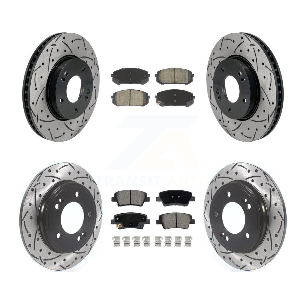 - Kit Includes: 2x Front DS-One Disc Brake Rotor (Both Side) + 1x Front Ceramic CMX Brake Pad Set + 2x Rear Coated Drilled Slotted DS-One Disc Brake Rotor (Both Side) + 1x Rear Ceramic CMX Brake Pad Set (Hardware Included)
