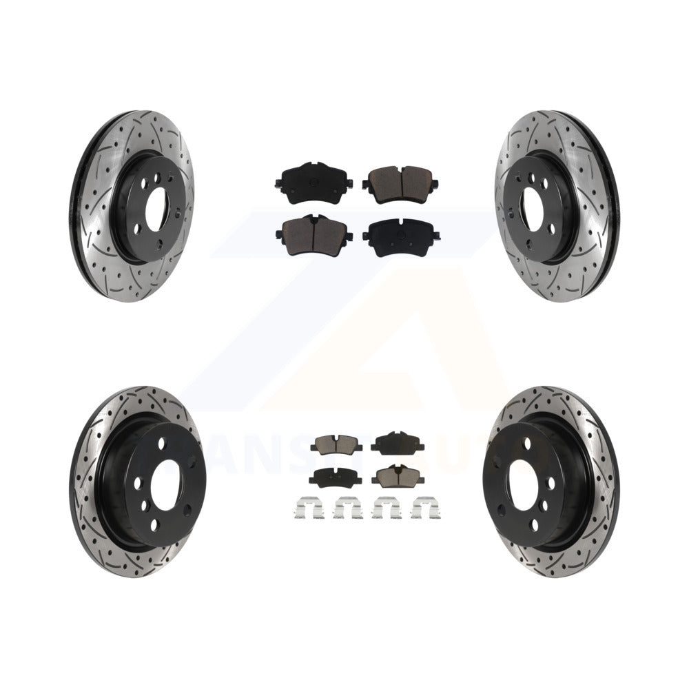 Front Rear Coated Drilled Slot Disc Brake Rotors Ceramic Pad Kit For Mini Cooper