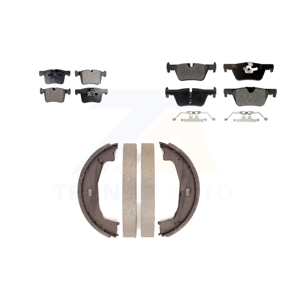 Front Rear Semi-Metallic Brake Pads & Parking Shoes Kit For BMW 328i 320i xDrive
