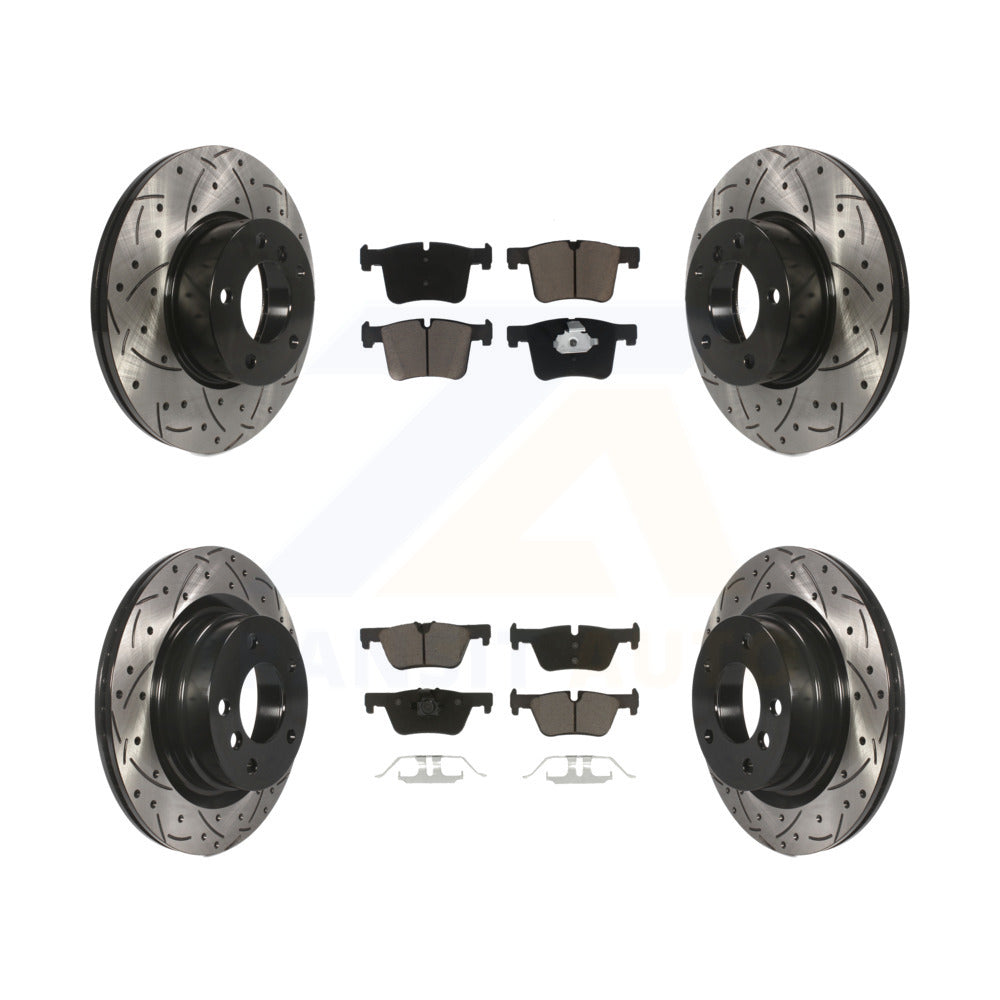 - INCLUDES: 2x Front Coated Drilled Slotted DS-One Disc Brake Rotor (Both Side) + 1x Front Ceramic CMX Brake Pad Set + 2x Rear Coated Drilled Slotted DS-One Disc Brake Rotor (Both Side) + 1x Rear Ceramic CMX Brake Pad Set (Hardware Included)