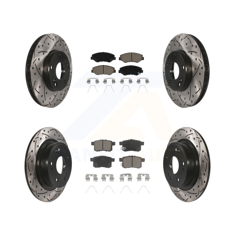 - INCLUDES: 2x Front Coated Drilled Slotted DS-One Disc Brake Rotor (Both Side) + 1x Front Ceramic CMX Brake Pad Set (Hardware Included) + 2x Rear Coated Drilled Slotted DS-One Disc Brake Rotor (Both Side) + 1x Rear Ceramic CMX Brake Pad Set (Hardware