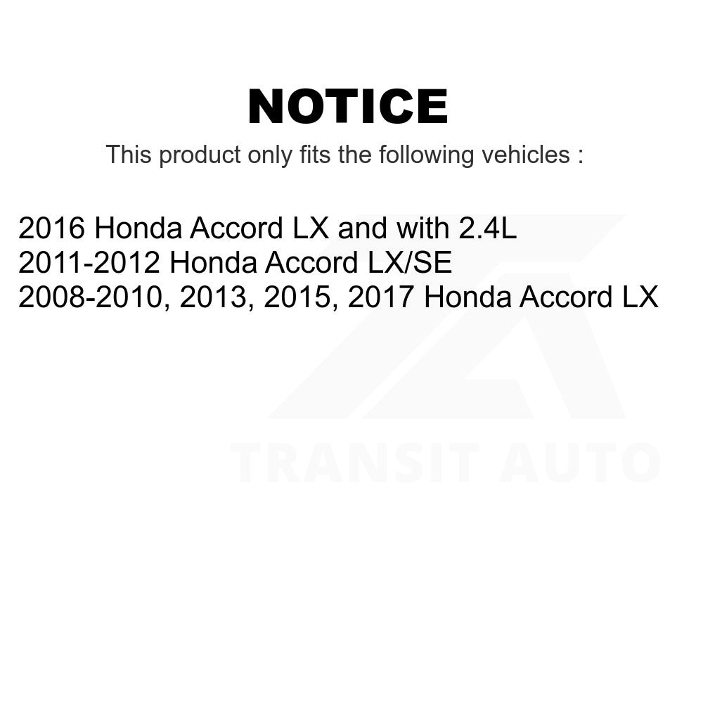 | 2008 | Honda | Accord | LX | None | All | All | All | All |