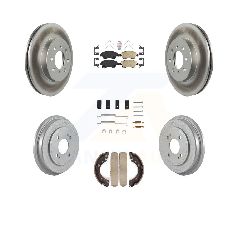 - INCLUDES: 2x Front Coated Genius Disc Brake Rotor (Both Side) + 2x Rear Coated Genius Brake Drum (Both Side) + 1x Front Ceramic AmeriBRAKES Brake Pad Set (Hardware Included) + 1x Rear Top Quality Drum Brake Hardware Kit + 1x Rear Top Quality Drum Bra