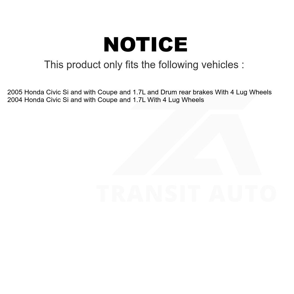 | 2005 | Honda | Civic | Si | With 4 Lug Wheels | Coupe | All | 1.7 | All |