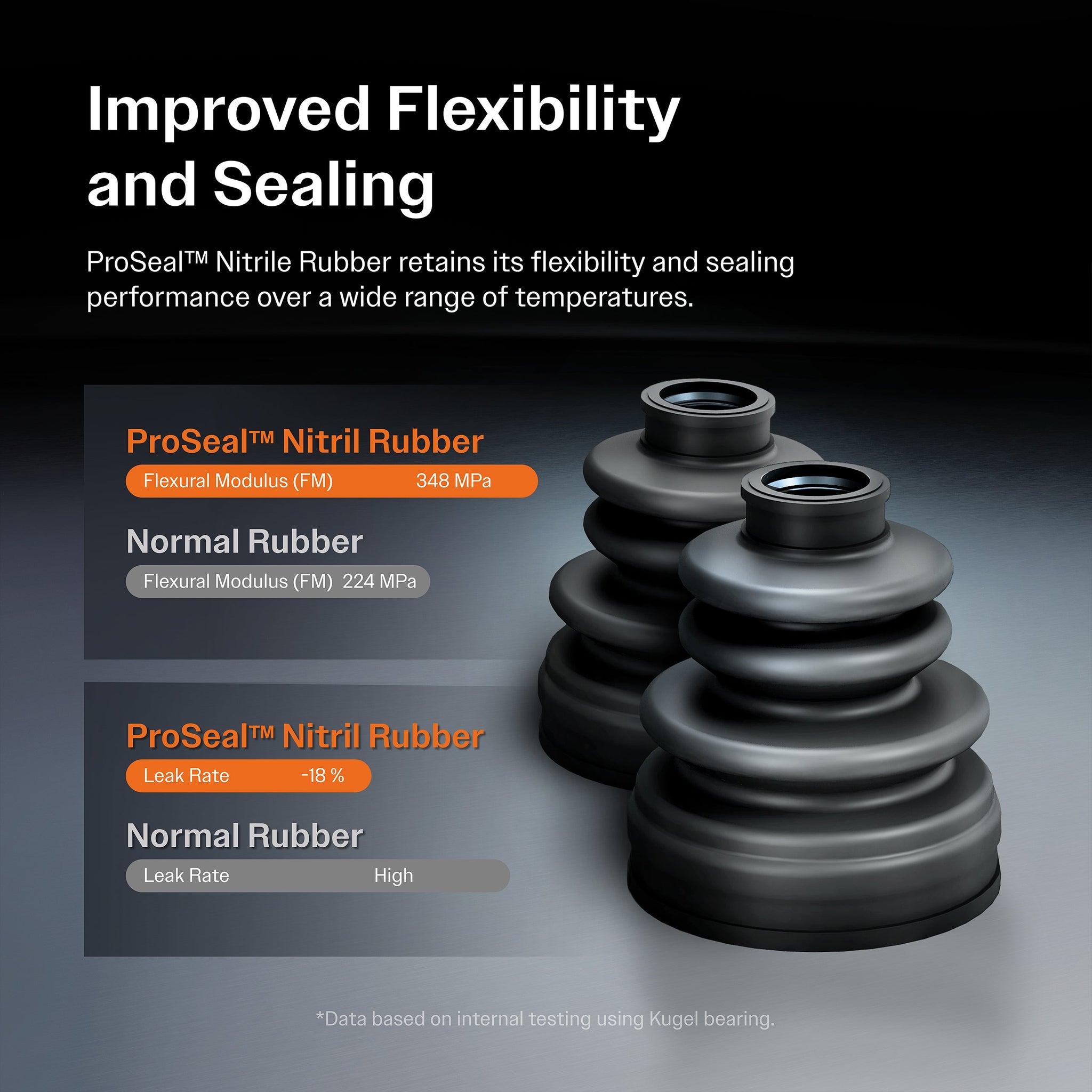 - Exclusive multi-lip boots are made with ProSeal™ Nitrile Rubber (NBR) which can successfully function at high delta of temperatures while retaining its flexibility and sealing performance