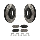 [Front] 2014-2017 Kia Rondo Performance Drilled & Slotted Brake Rotor & Ceramic Pads Kit For Max Braking