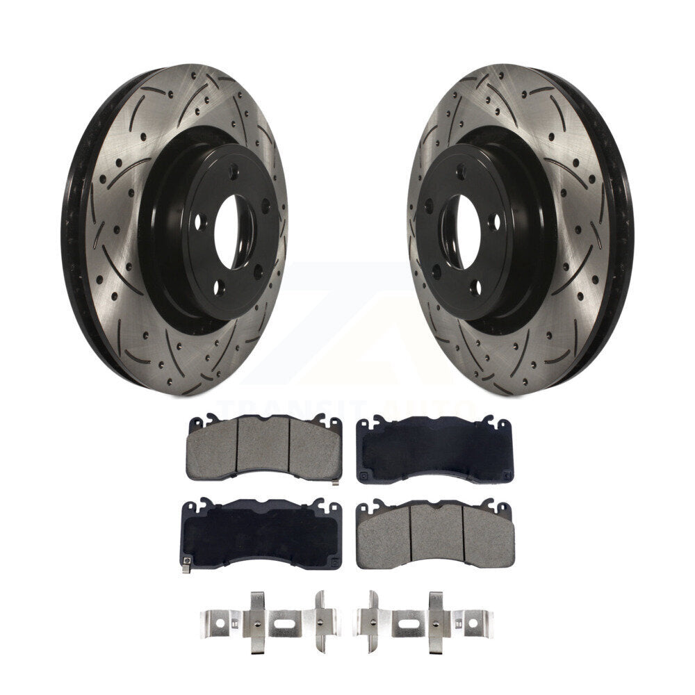 Front Drill Slot Brake Rotor Ceramic Pad Kit For Ford Mustang With Brembo Brakes