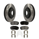 [Front] 2017-2019 Kia Soul EV Performance Drilled & Slotted Brake Rotor & Ceramic Pads Kit For Max Braking