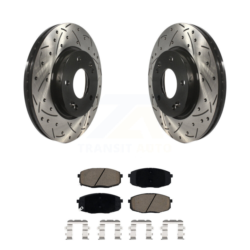 Front Drill Slot Brake Rotors Ceramic Pad Kit For Kia Hyundai Kona Soul Forte GT