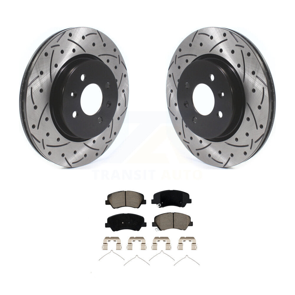 Front Drilled Slot Disc Brake Rotor & Ceramic Pad Kit For Kia Rio Hyundai Accent