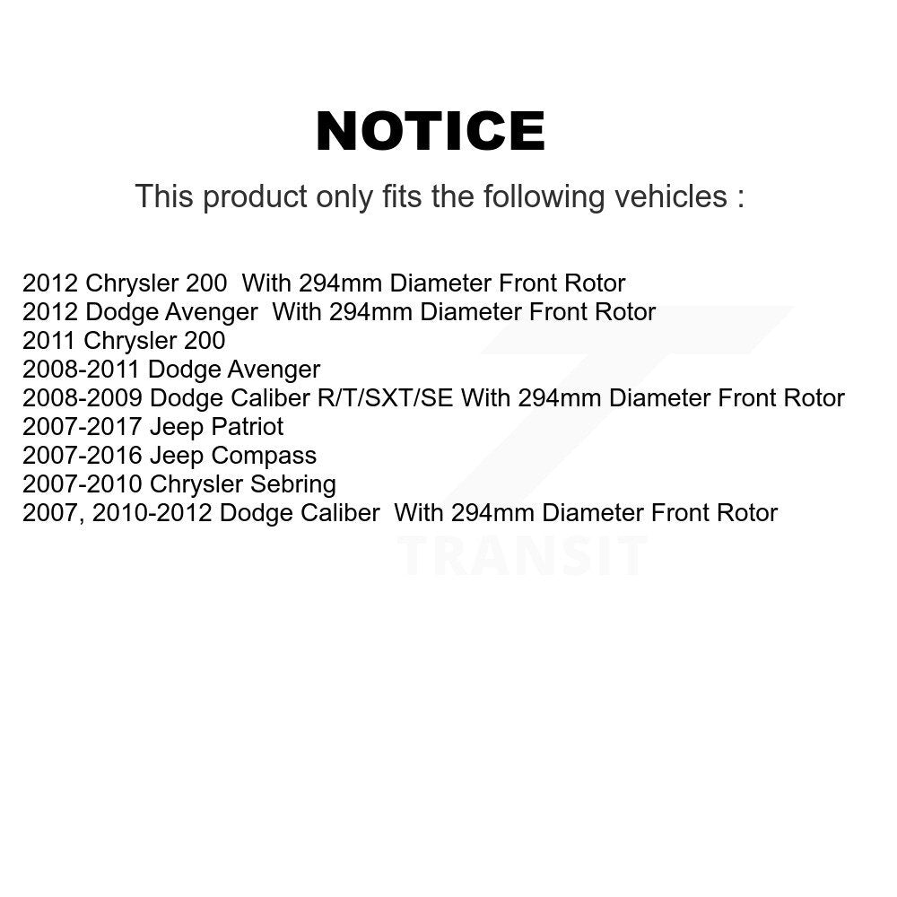 | 2012 | Dodge | Caliber | All | With 294mm Diameter Front Rotor | All | All | All | All |