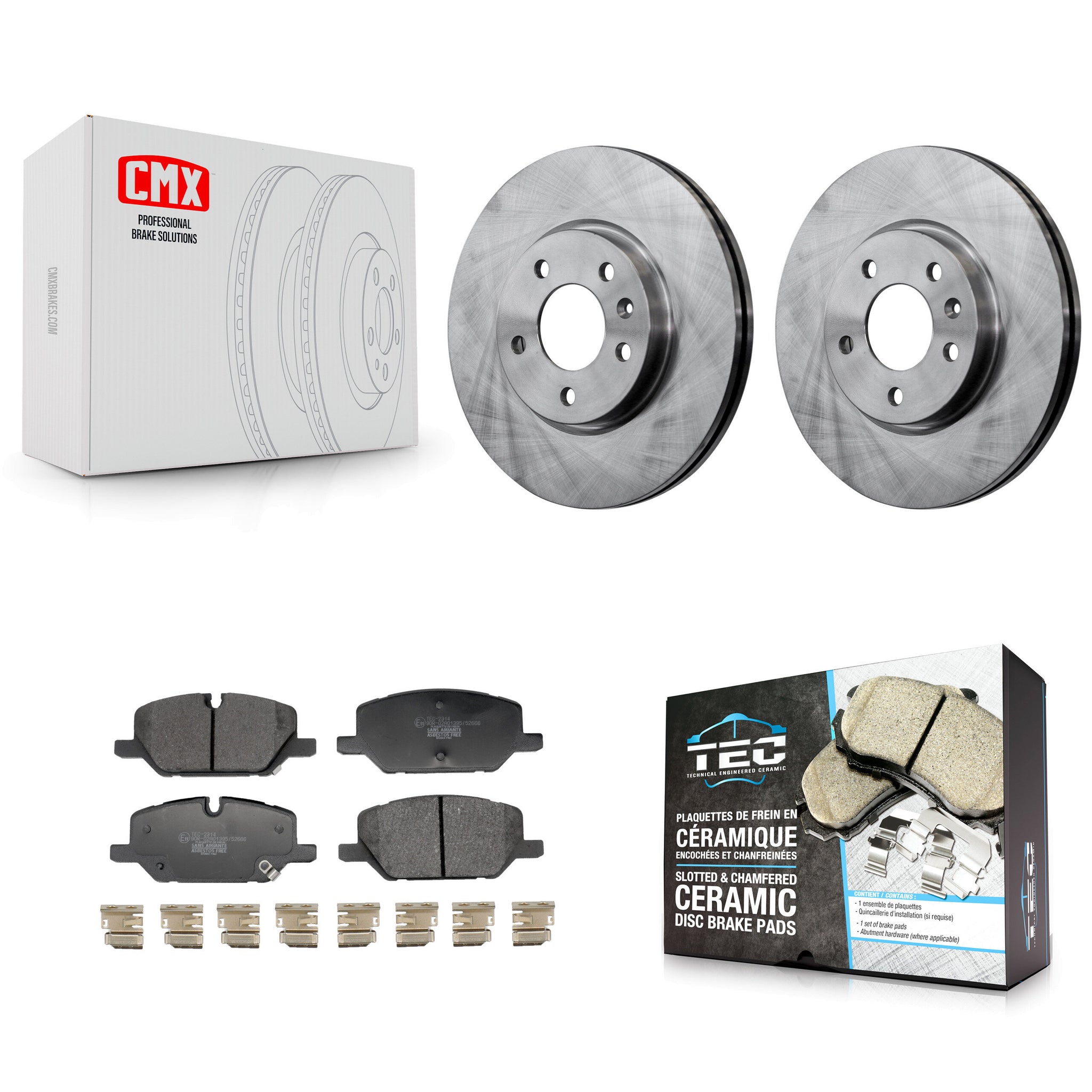 - Kit Includes: 2x Front CMX Disc Brake Rotor (Both Side) + 1x Front Ceramic TEC Brake Pad Set (Hardware Included)