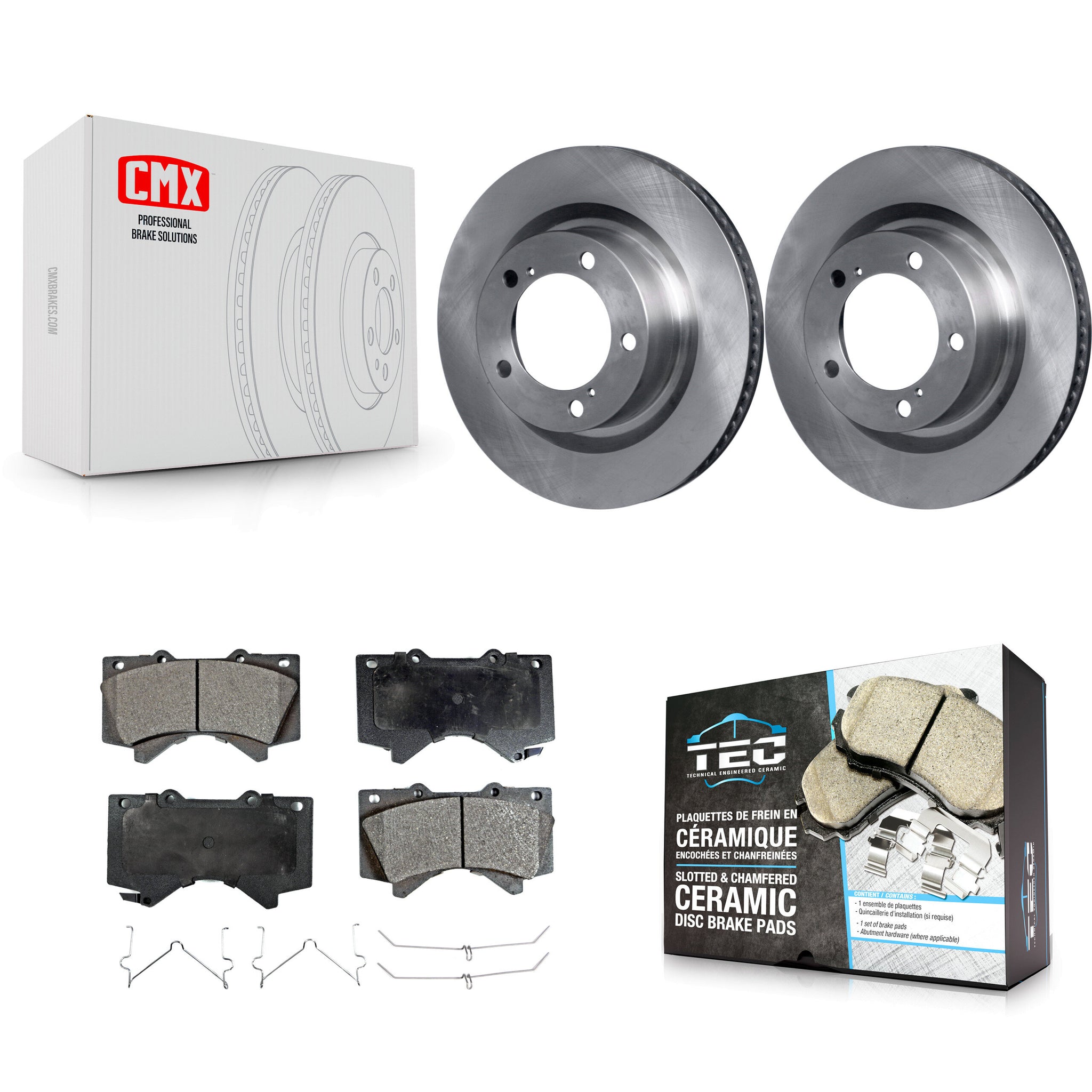 - INCLUDES: 2x Front Top Quality Disc Brake Rotor (Both Side) + 1x Front Ceramic TEC Brake Pad Set (Hardware Included)