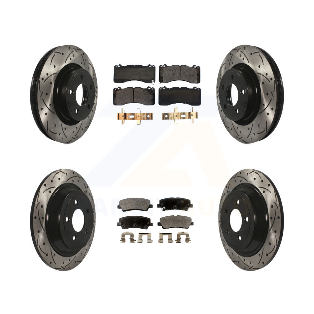 Front Rear Drill Slot Disc Brake Rotors Ceramic Pad Kit For 2015 Ford Mustang V6