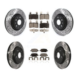Front Rear Coated Drilled Slot Disc Brake Rotor Ceramic Pad Kit For Cadillac CT6