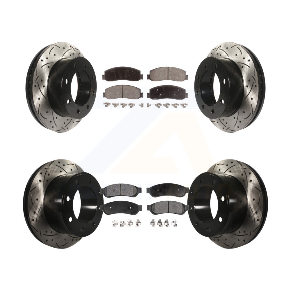 Front Rear Drill Slot Brake Rotors Ceramic Pad Kit For Ford F-250 Super Duty 4WD