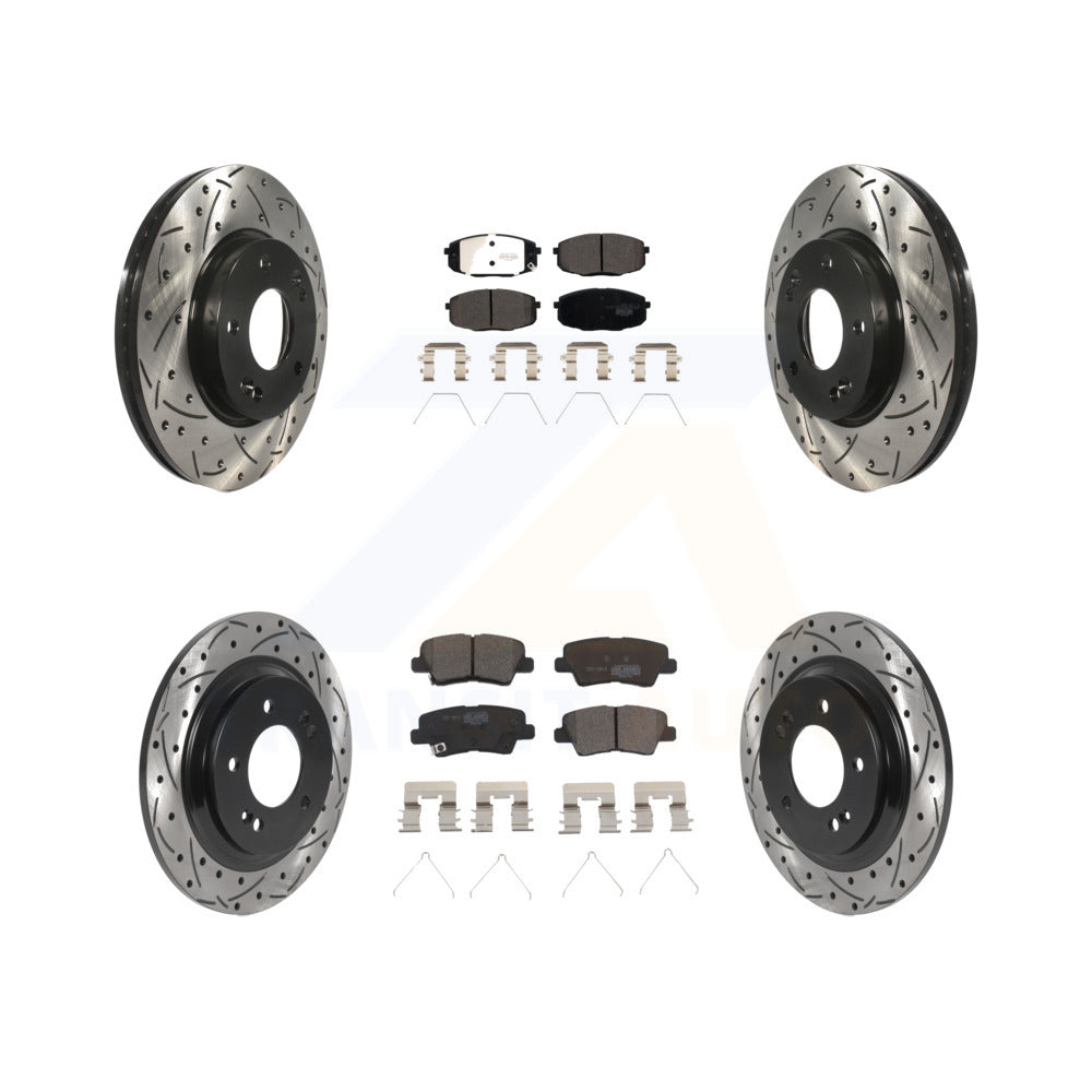 Front Rear Drilled Slot Brake Rotor & Ceramic Pad Kit For Hyundai Elantra GT Kia