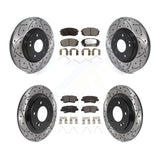 Front Rear Coated Drilled Slot Disc Brake Rotor & Ceramic Pad Kit For Kia Optima