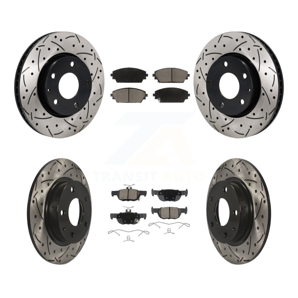 Front Rear Coated Drilled Slot Disc Brake Rotors Ceramic Pad Kit For Mazda 3 FWD