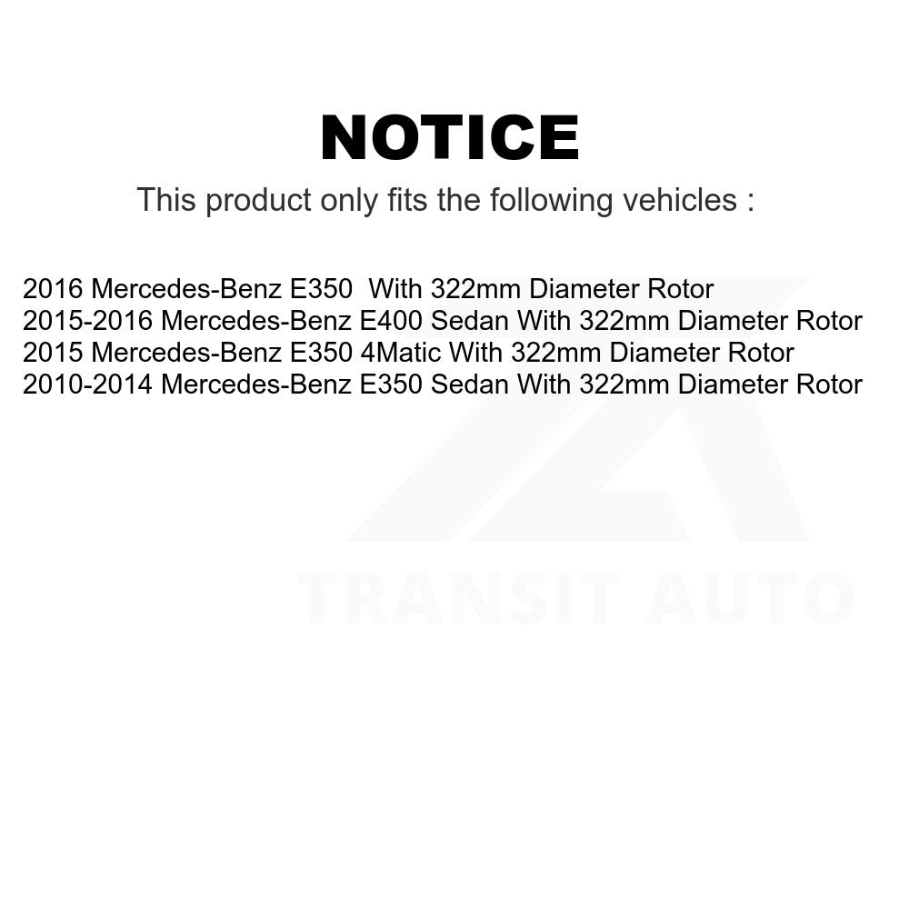 | 2014 | Mercedes-Benz | E350 | All | With 322mm Diameter Rotor | Sedan | All | All | All |