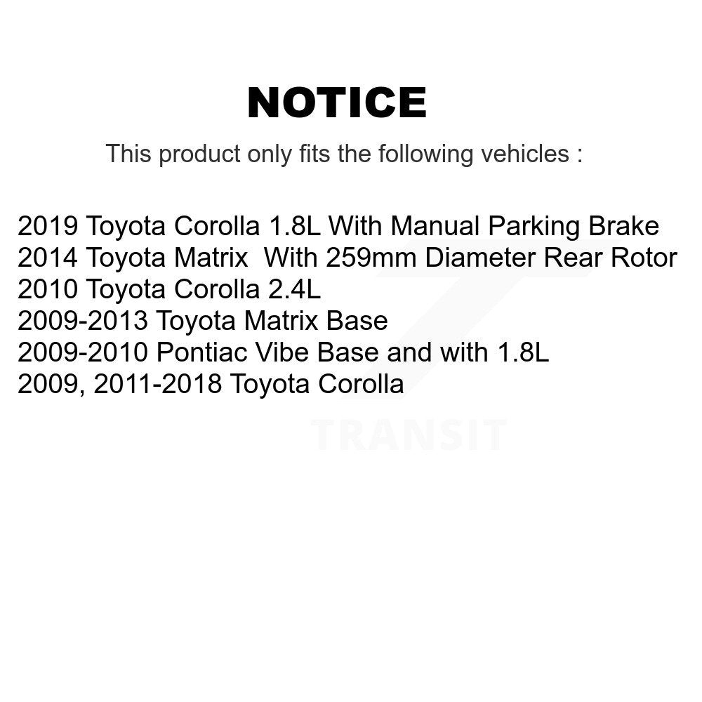 | 2019 | Toyota | Corolla | All | With Manual Parking Brake | All | All | 1.8 | All |
