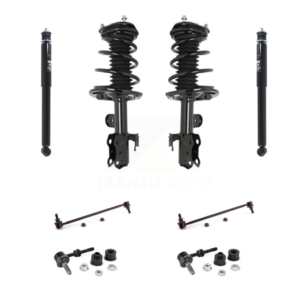 - Kit Includes: 2x Front Unity Automotive Suspension Strut and Coil Spring Assembly (Both Side) + 2x Front TOR Suspension Stabilizer Bar Link Kit (Both Side) + 2x Rear TMC Shock Absorber (Both Side) + 2x Rear TOR Suspension Stabilizer Bar Link Kit (Bot