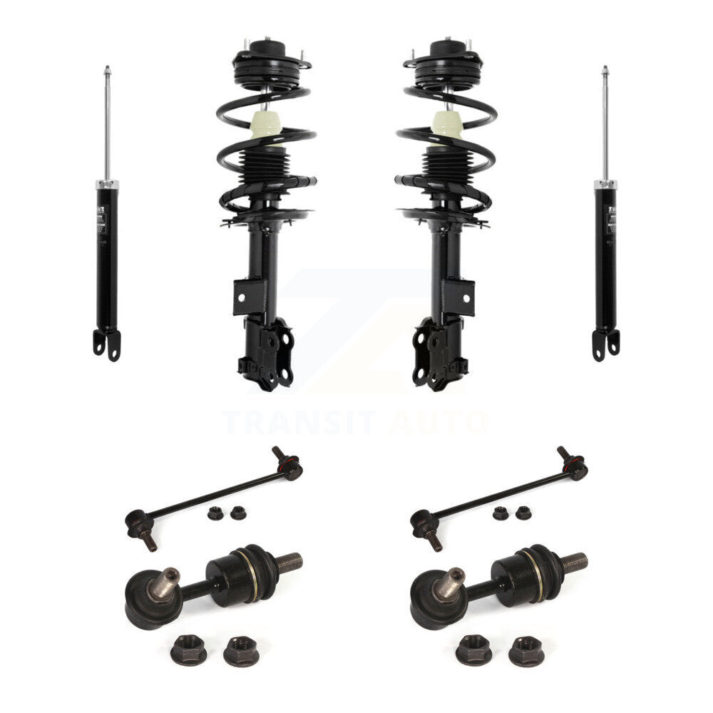 • Kit Includes: 2x Front Unity Automotive Suspension Strut and Coil Spring Assembly (Both Side) + 2x Front TOR Suspension Stabilizer Bar Link Kit (Both Side) + 2x Rear TMC Shock Absorber (Both Side) + 2x Rear TOR Suspension Stabilizer Bar Link Kit (Bot