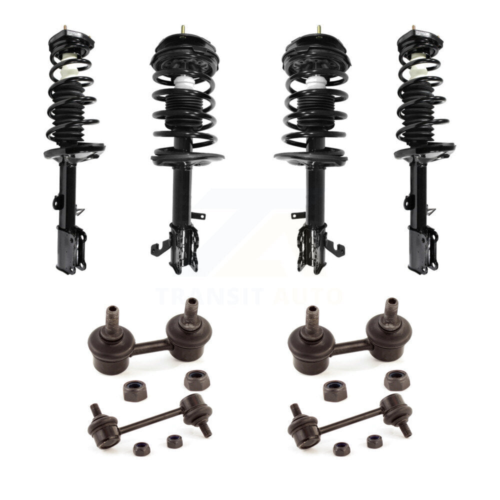 • Kit Includes: 2x Front Unity Automotive Suspension Strut and Coil Spring Assembly (Both Side) + 2x Front TOR Suspension Stabilizer Bar Link Kit (Both Side) + 2x Rear Unity Automotive Suspension Strut and Coil Spring Assembly (Both Side) + 2x Rear TOR