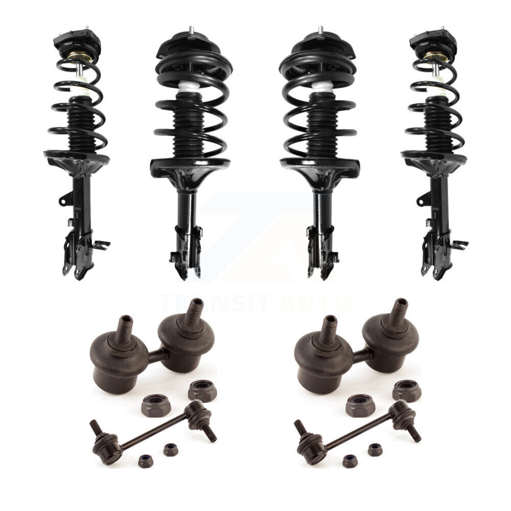 • Kit Includes: 2x Front Unity Automotive Suspension Strut and Coil Spring Assembly (Both Side) + 2x Front TOR Suspension Stabilizer Bar Link Kit (Both Side) + 2x Rear Unity Automotive Suspension Strut and Coil Spring Assembly (Both Side) + 2x Rear TOR