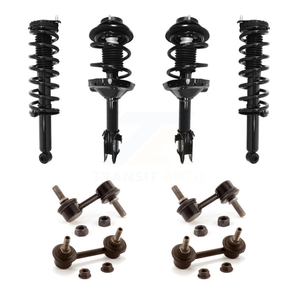 • Kit Includes: 2x Front Unity Automotive Suspension Strut and Coil Spring Assembly (Both Side) + 2x Front TOR Suspension Stabilizer Bar Link Kit (Both Side) + 2x Rear Unity Automotive Suspension Strut and Coil Spring Assembly (Both Side) + 2x Rear TOR
