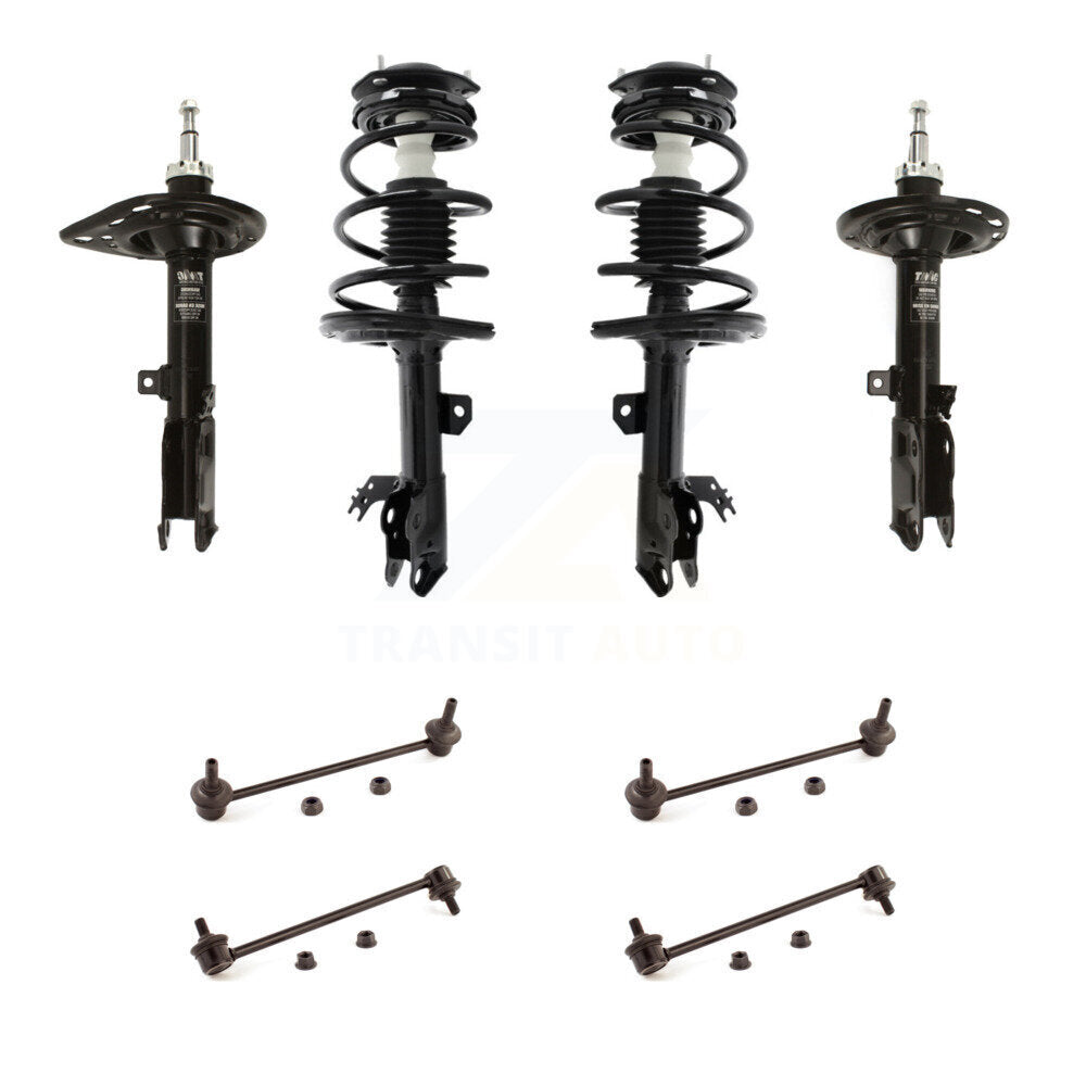 • Kit Includes: 2x Front Unity Automotive Suspension Strut and Coil Spring Assembly (Both Side) + 2x Front TOR Suspension Stabilizer Bar Link Kit (Both Side) + 2x Rear TMC Suspension Strut (Both Side) + 2x Rear TOR Suspension Stabilizer Bar Link Kit (B