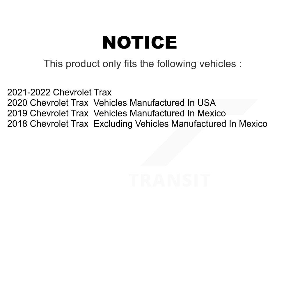 | 2018 | Chevrolet | Trax | All | Excluding Vehicles Manufactured In Mexico | All | All | All | All |