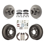 - COMPREND : 2 rotors et moyeux de frein à disque avant de qualité supérieure (des deux côtés) + 2 tambours de frein arrière de qualité supérieure (des deux côtés) + 1 jeu de plaquettes de frein avant en céramique TEC (matériel inclus) + 1 kit de matériel de frein à tambour arrière de qualité supérieure + 1 x Dru arrière de qualité supérieure