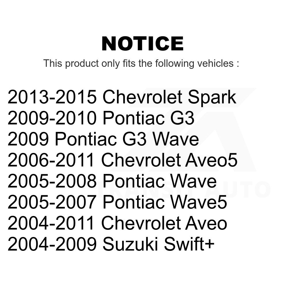 2004 2005 2006 2007 2008 2009 2010 2011 2012 2013 2014 2015 Chevrolet Pontiac Suzuki Chevy Aveo Aveo5 G3 Wave Spark Swift+ Wave5