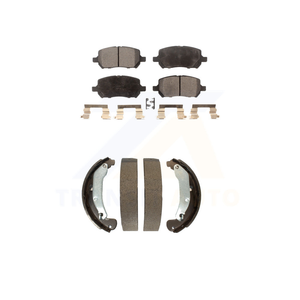 • INCLUDES: 1x Front Semi-Metallic Positive Plus Brake Pad Set (Hardware Included) + 1x Rear Top Quality Drum Brake Shoe Set