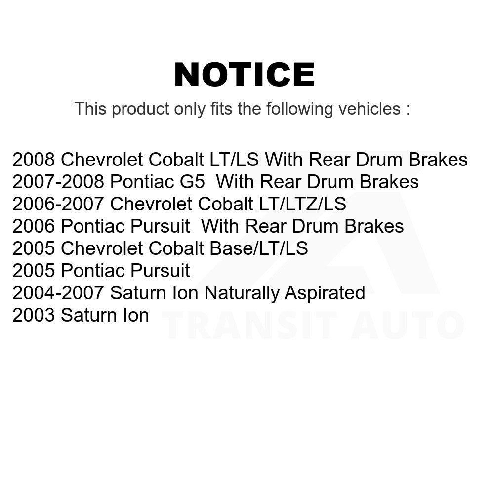 2003 2004 2005 2006 2007 2008 Chevrolet Pontiac Saturn Chevy Cobalt G5 Ion Pursuit Base LT LS LTZ Naturally Aspirated