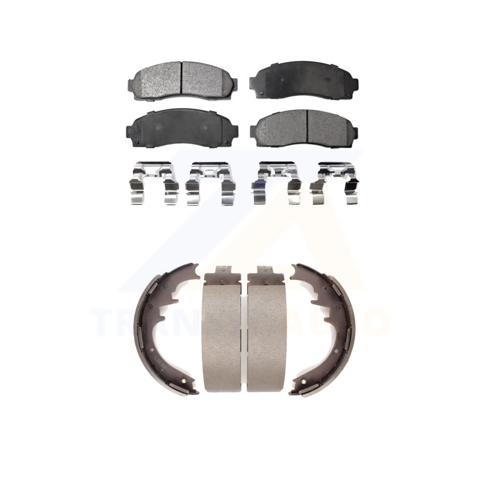 Front Rear Semi-Metallic Brake Pads & Drum Shoes Kit For Ford Ranger Mazda B2300