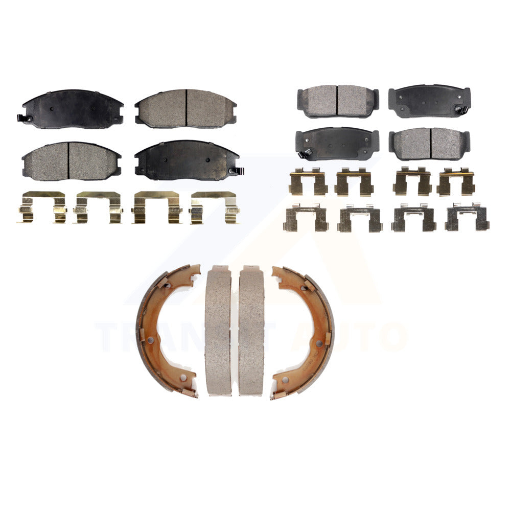 Front Rear Semi-Metallic Brake Pads & Parking Shoe Kit For 2003-2009 Kia Sorento