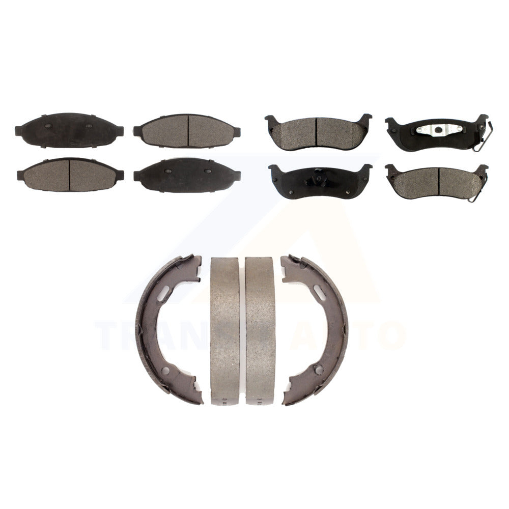 Front Rear Semi-Metallic Brake Pads Parking Shoe Kit For 04-08 Chrysler Pacifica