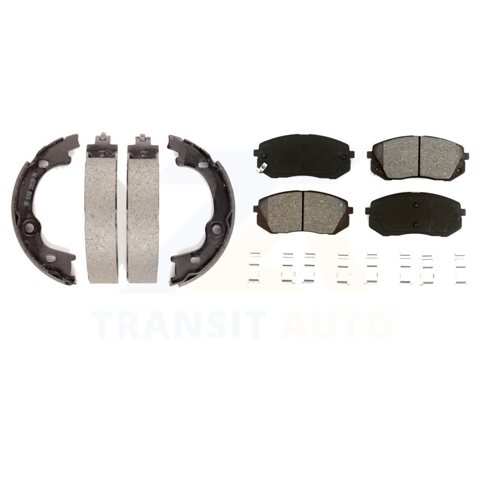 Front Rear Semi-Metallic Brake Pads & Parking Shoes Kit For 07-10 Kia Rondo