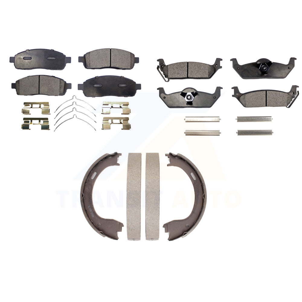 Front Rear Semi-Metallic Brake Pads And Parking Shoes Kit For 2009 Ford F-150