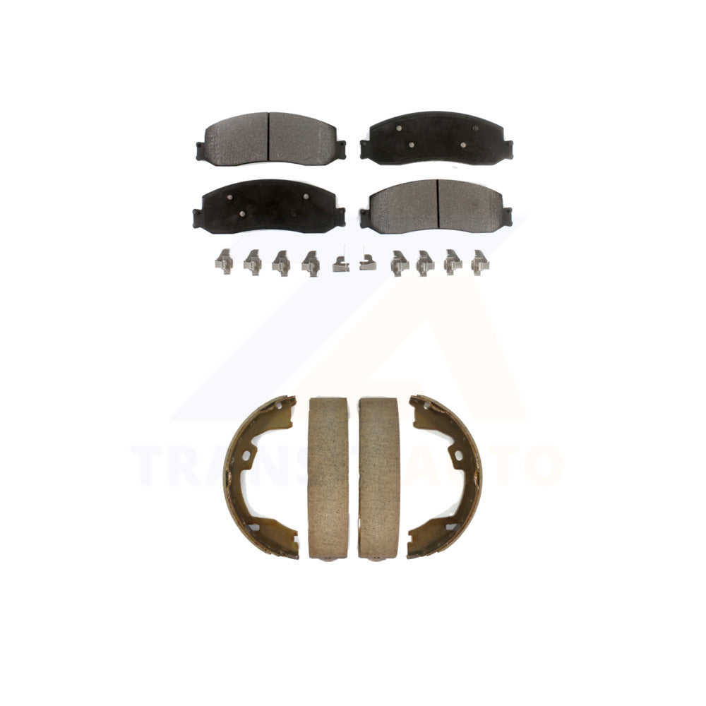 Front Rear Semi-Metallic Brake Pads & Parking Shoe Kit For Ford F-250 Super