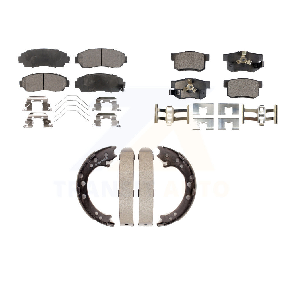 Front Rear Semi-Metallic Brake Pads & Parking Shoes Kit For 12-16 Honda CR-V AWD