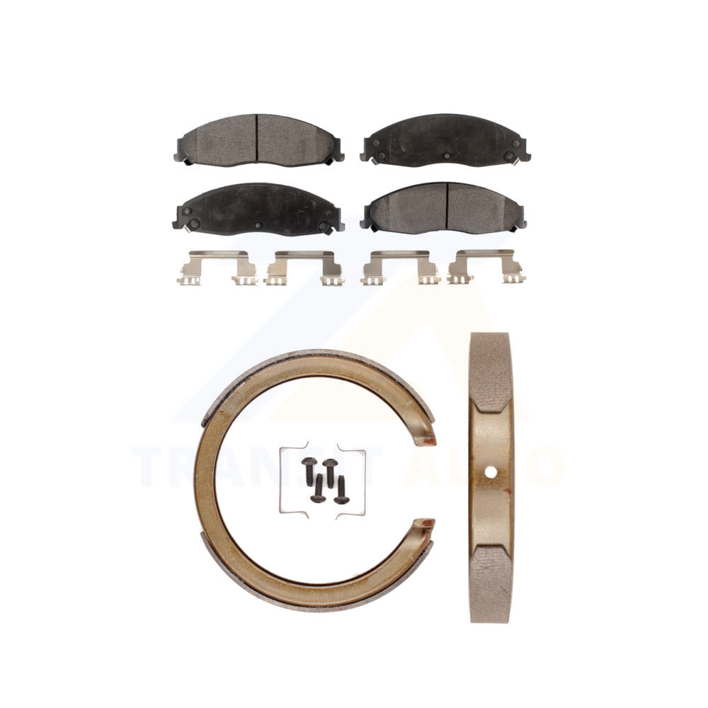 Front Rear Semi-Metallic Brake Pads And Parking Shoes Kit For Cadillac STS