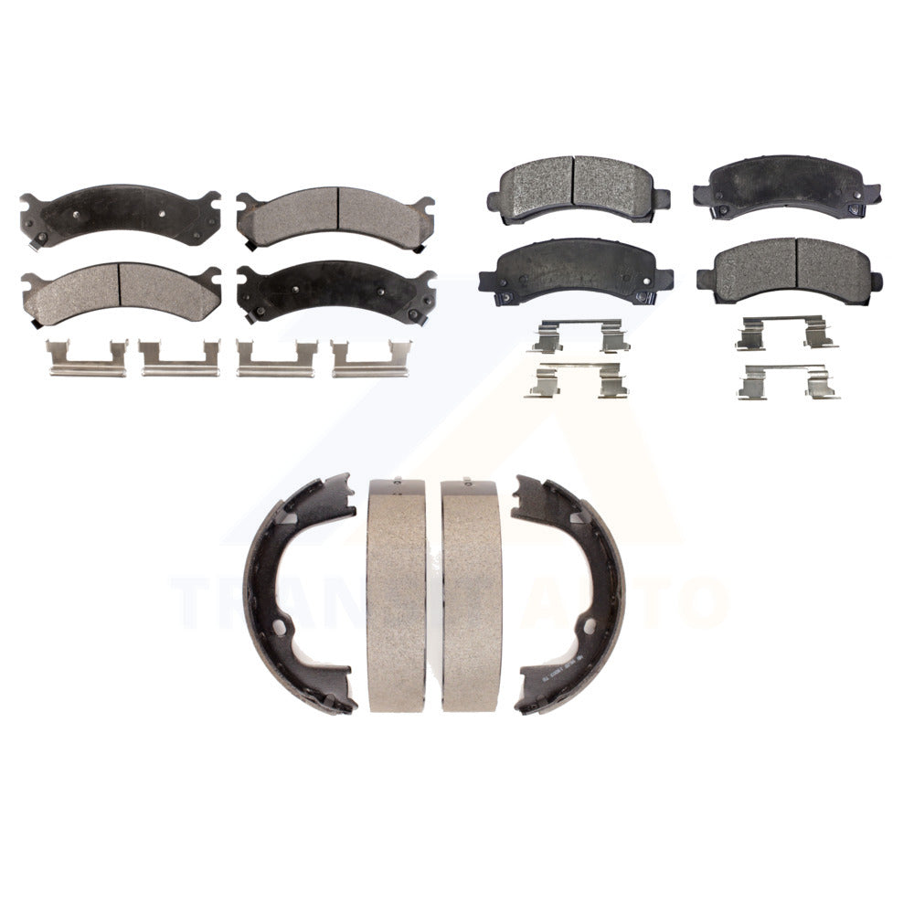 Front Rear Semi-Metallic Brake Pads Parking Shoes Kit For Chevrolet Express 3500