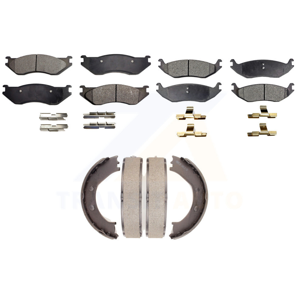 Front Rear Semi-Metallic Brake Pads Parking Shoes Kit For Dodge Durango Ram 1500