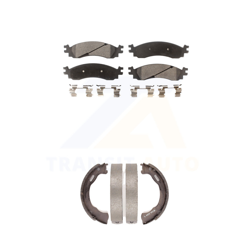 Front Rear Semi-Metallic Brake Pads Parking Shoe Kit For Ford Explorer Trac