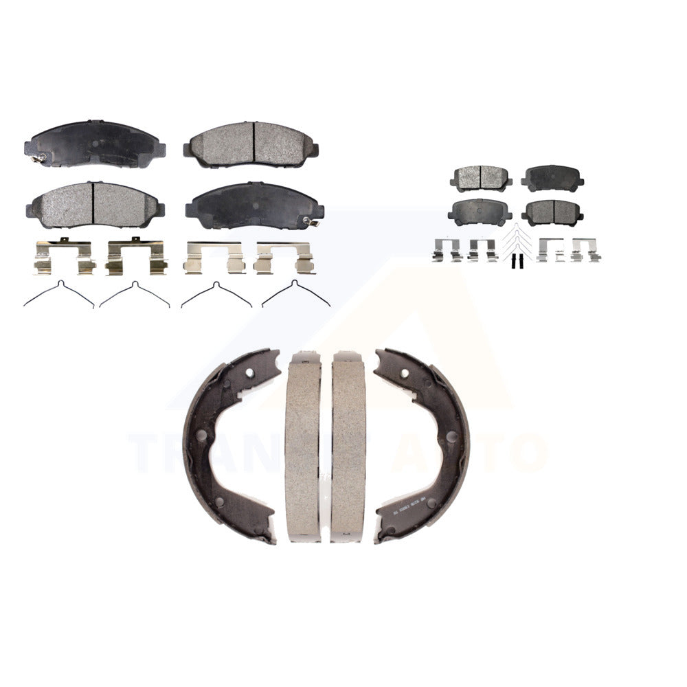 Front Rear Semi-Metallic Brake Pads & Parking Shoe Kit For Honda Pilot Acura MDX