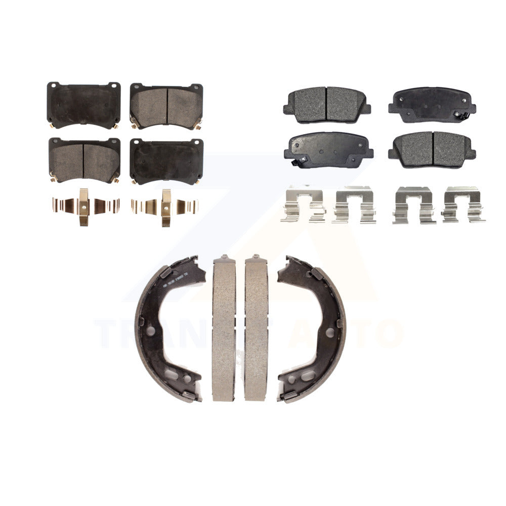 Front Rear Semi-Metallic Brake Pads & Parking Shoe Kit For Hyundai Genesis Equus