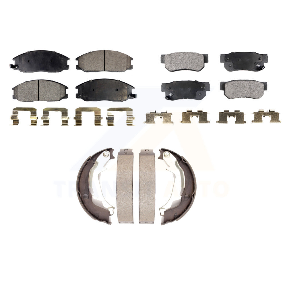 • INCLUDES: 1x Front Semi-Metallic Positive Plus Brake Pad Set (Hardware Included) + 1x Rear Semi-Metallic Positive Plus Brake Pad Set (Hardware Included) + 1x Rear Top Quality Parking Brake Shoe